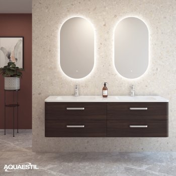 Die Waschbecken der Aquaestil Badezimmermöbel bestehen aus Mineralguss oder, in bestimmten Serien, aus Keramik. Für die Reinigung und Pflege der Aquaestil Waschbecken können Sie das Aquaestil Reinigungsmittel für Acryl- und Glasflächen oder ein standardmäßiges Badezimmer-Reinigungsmittel verwenden. Zur Entfernung von Kalk empfehlen wir Essig oder spezielle Mittel zur Kalkentfernung, die keine Mikrogranulate enthalten, die die Oberfläche des Waschbeckens zerkratzen könnten.