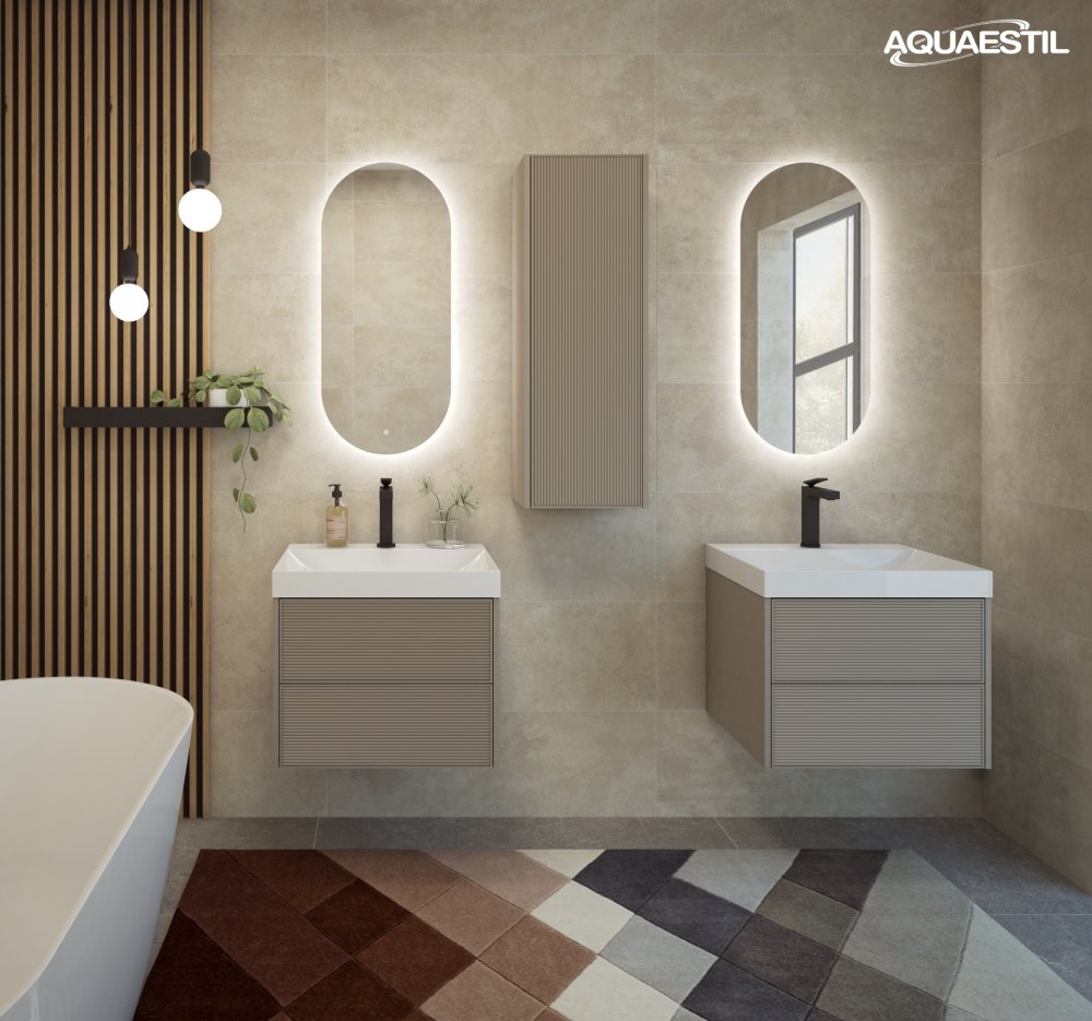 Die Waschbecken der Aquaestil Badezimmermöbel bestehen aus Mineralguss oder, in bestimmten Serien, aus Keramik. Für die Reinigung und Pflege der Aquaestil Waschbecken können Sie das Aquaestil Reinigungsmittel für Acryl- und Glasflächen oder ein standardmäßiges Badezimmer-Reinigungsmittel verwenden. Zur Entfernung von Kalk empfehlen wir Essig oder spezielle Mittel zur Kalkentfernung, die keine Mikrogranulate enthalten, die die Oberfläche des Waschbeckens zerkratzen könnten.