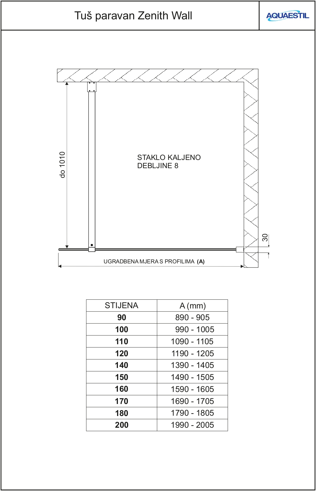 - Paravan Zenith Wall dostupan je i u varijanti s kutnim fiksatorom u rasponu dimenzija od 90 do 120 cm širine*