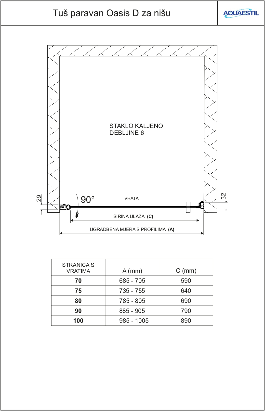- Smjer otvaranja vrata potrebno je definirati prilikom montaže paravana.