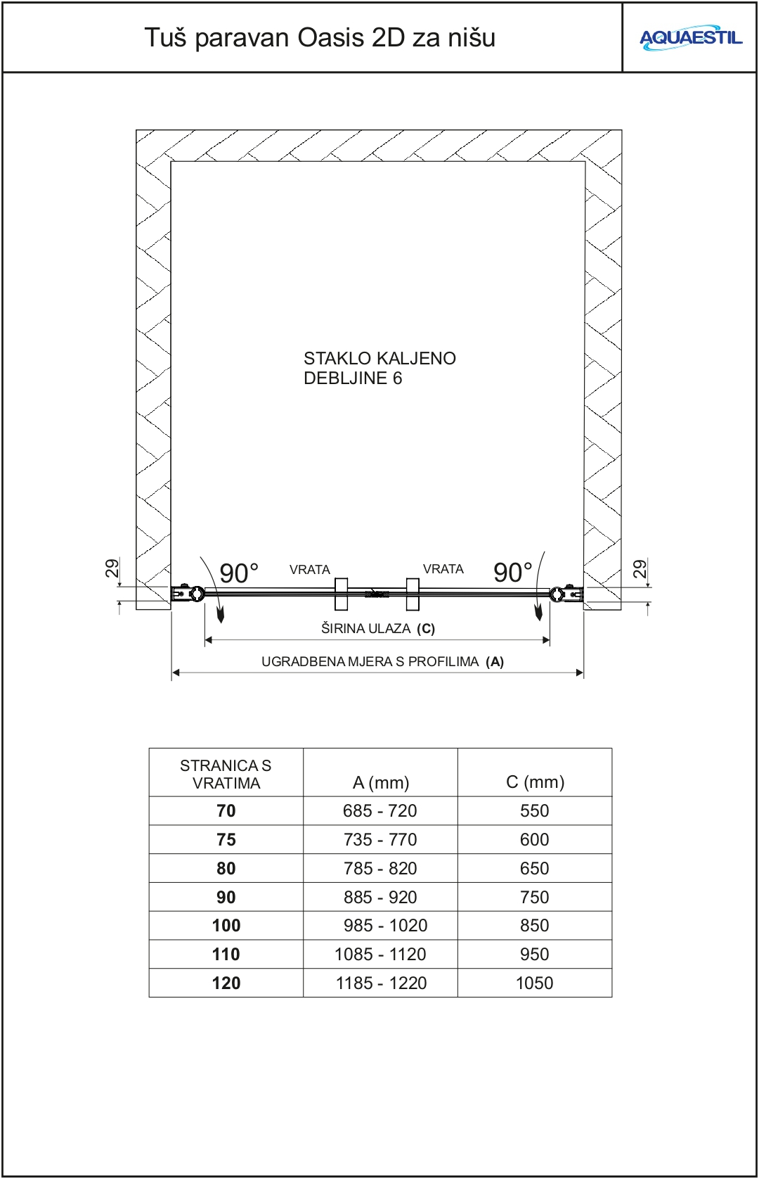 Animacija prikazuje način otvaranja vrata ili pokretnog dijela na Aquaestil tuš kabinama i paravanima radi boljeg razumijevanja funkcionalnosti proizvoda. Animacija ne prikazuje detaljne tehničke karakteristike proizvoda.