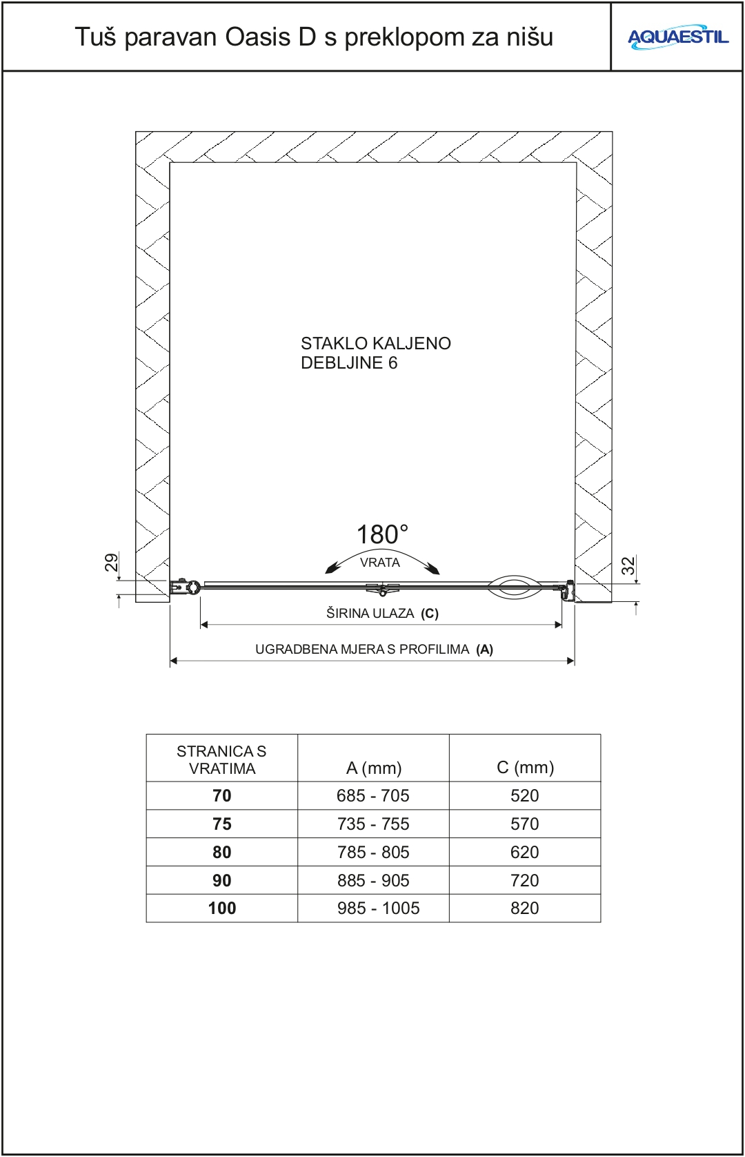 Animacija prikazuje način otvaranja vrata ili pokretnog dijela na Aquaestil tuš kabinama i paravanima radi boljeg razumijevanja funkcionalnosti proizvoda. Animacija ne prikazuje detaljne tehničke karakteristike proizvoda.