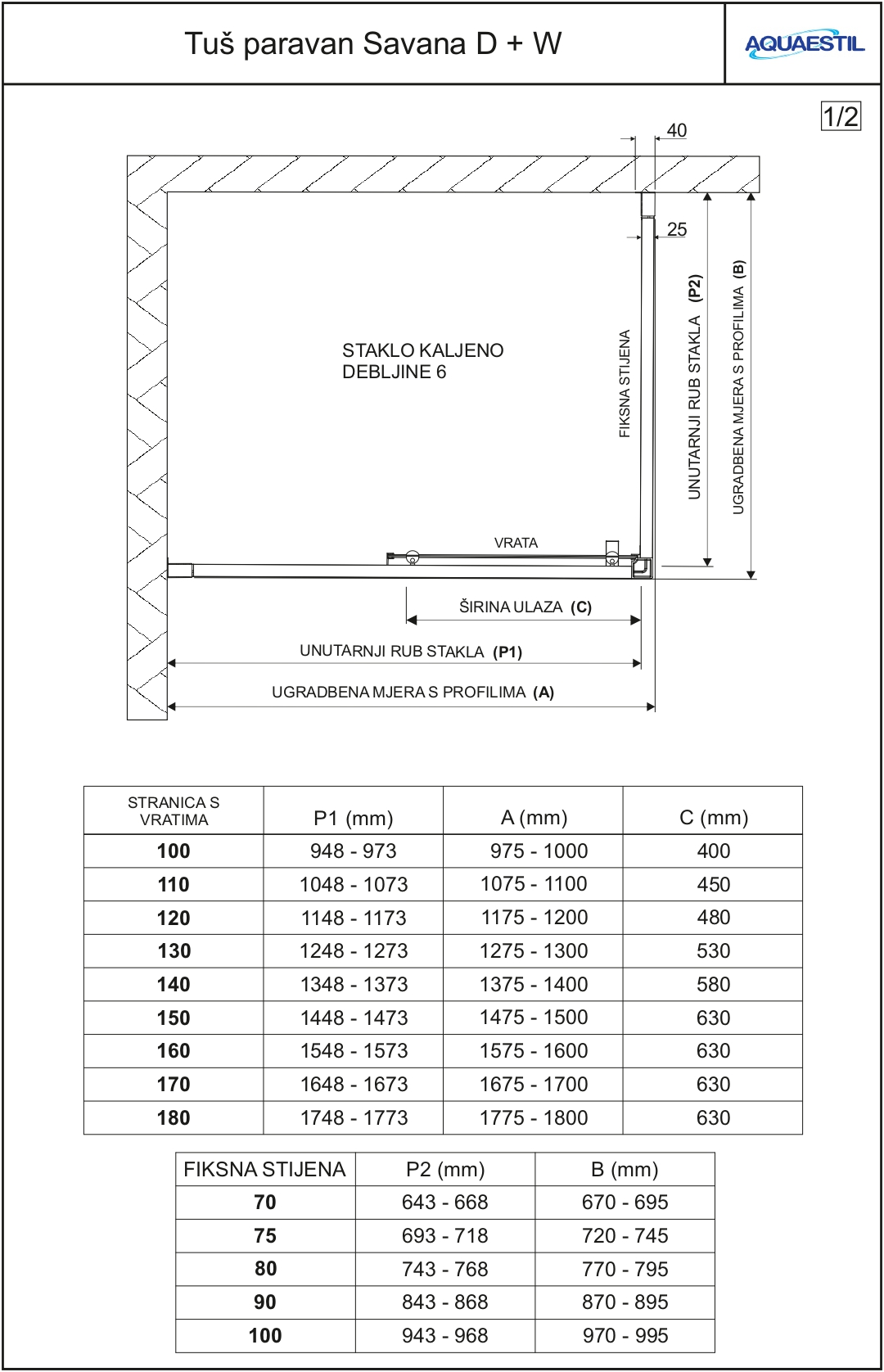 - Ukoliko se paravan postavlja na pločice, a ne na tuš kadu, uz narudžbu je potrebno dostaviti nacrt sa točnim dimenzijama prostora za tuširanje.