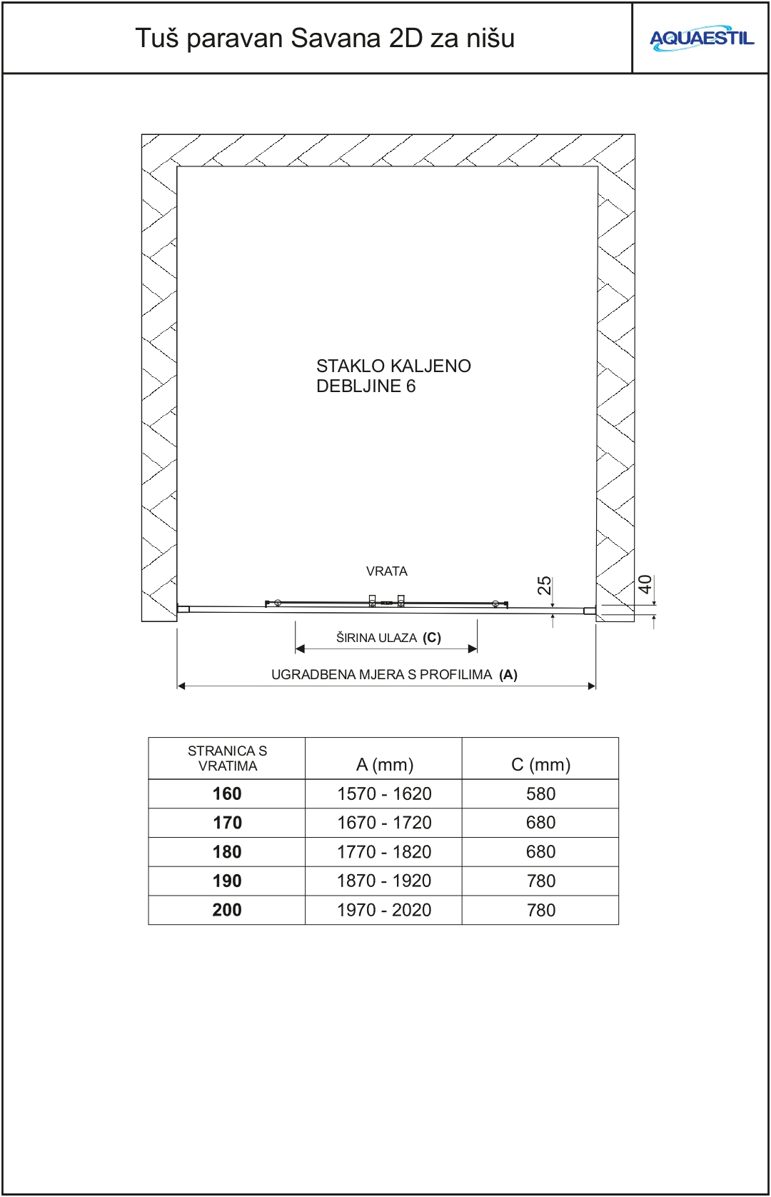 Ovaj moderni paravan sastoji se od dvoja klizna vrata s otvorom u sredini, a namijenjen je zatvaranju većih prostora za tuširanje koji su smješteni između tri zida. Elegantni profili koji se nalaze s gornje i donje strane osiguravaju maksimalnu čvrstoću cijele konstrukcije. Vrata su s gornje strane opremljena dvostrukim kotačićima koji osiguravaju lakše klizanje, a vertikalne brtve na spoju vrata su magnetne.