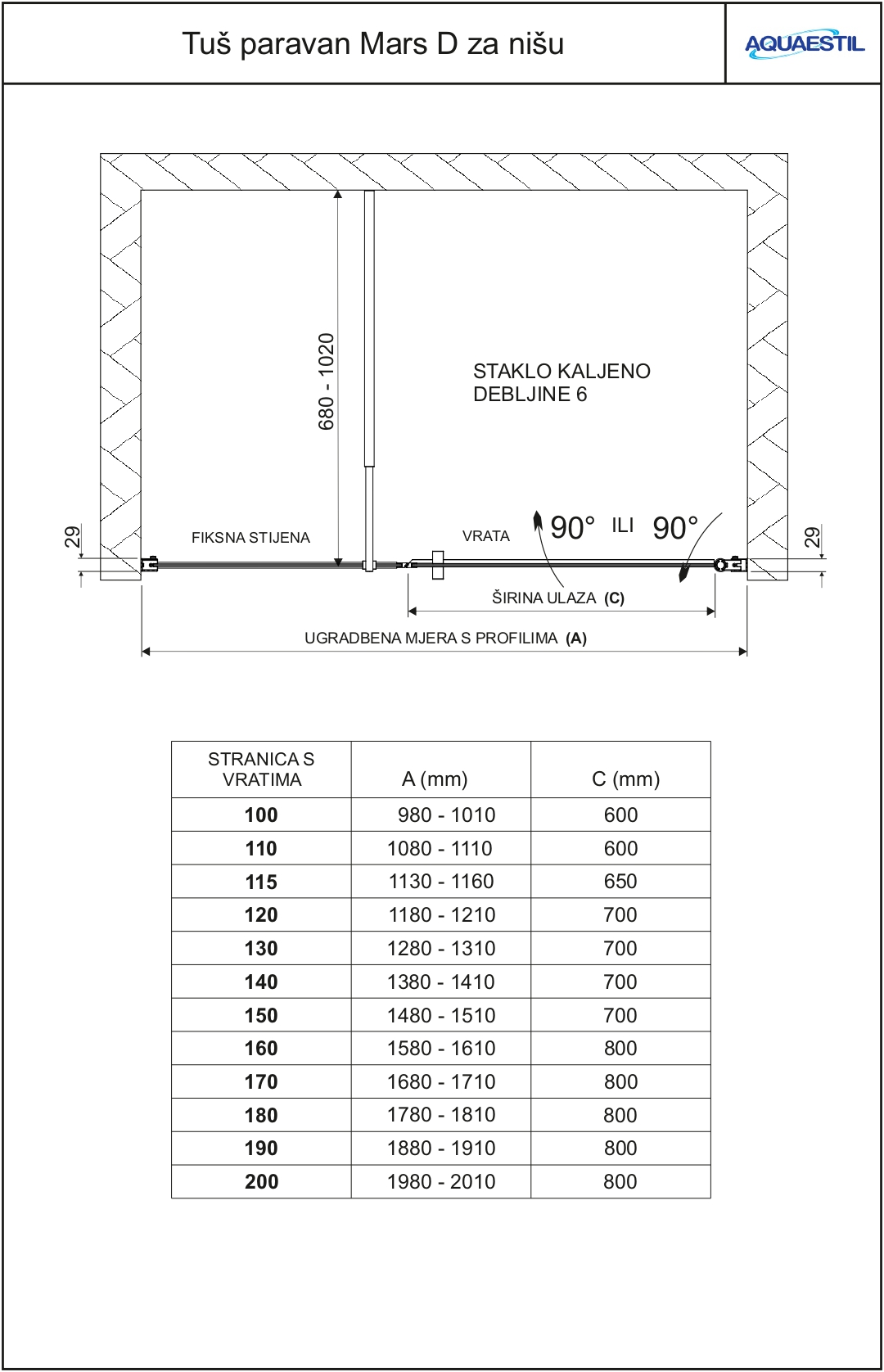 - Mars D za nišu je dostupan i u varijanti s kutnim fiksatorom u rasponu dimenzija od 100 do 180 cm.