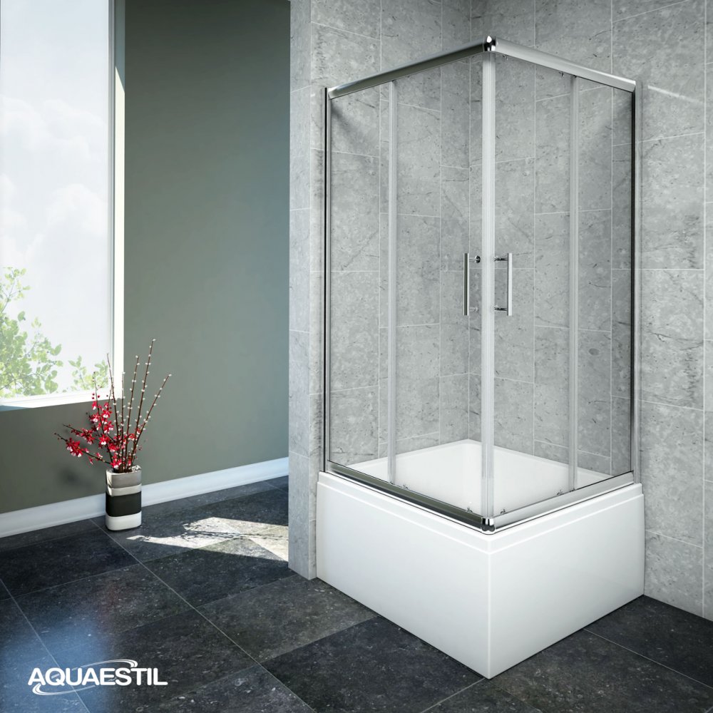 Diese moderne Duschwand aus Glas ist mit zwei Schiebetüren und hochwertigen Doppelrollen auf ihrer Ober- und Unterseite ausgestattet. Mit ihrer Höhe von 155 cm ist sie speziell auf die hohe Duschwanne Krapina abgestimmt.