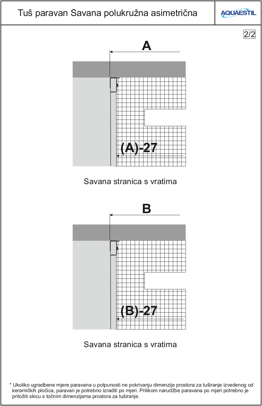 - Maßanfertigung ist für halbkreisförmige Duschabtrennungen nicht verfügbar.