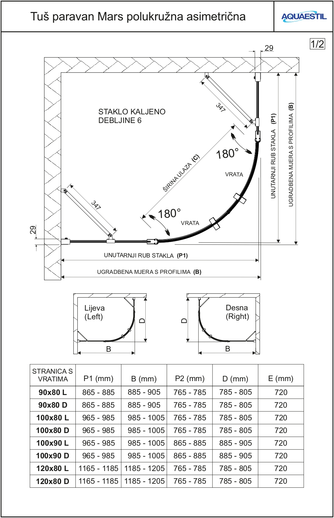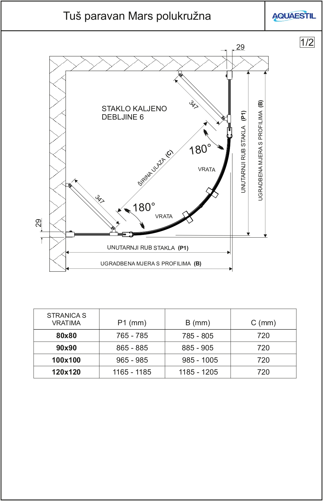 - Custom-tailored dimensions are not available for semicircular shower screens.