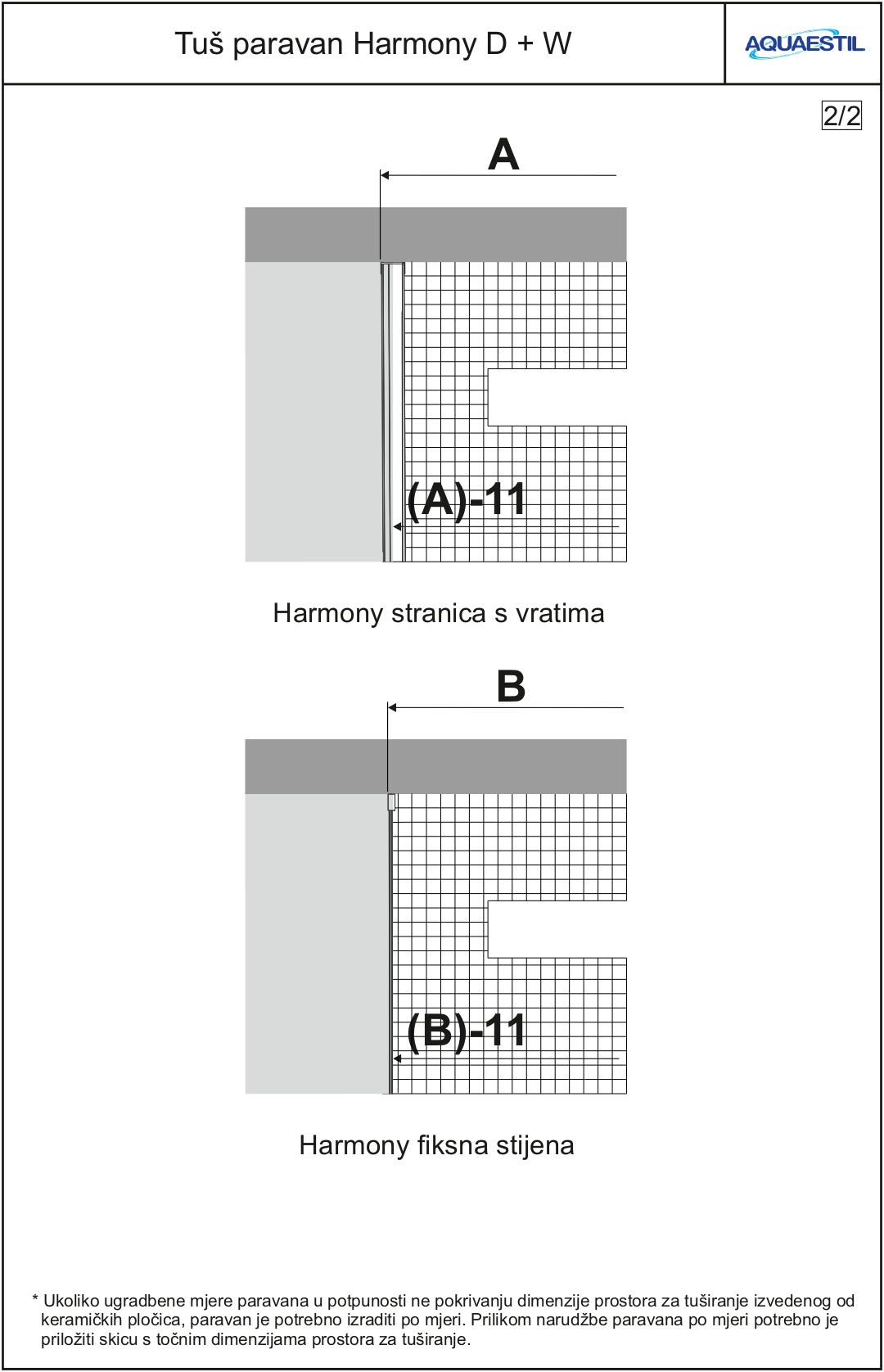 - If the screen is intended to be installed on tiles and not to the shower tray, the order has to include a drawing with exact dimensions of the showering area.