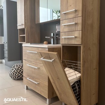 - Boje prezentirane na web stranici mogu u manjoj mjeri odstupati u odnosu na stvarne boje kupaonskog namještaja. Uzorci boja namještaja mogu se vidjeti uživo kod ovlaštenih Aquaestil maloprodajnih partnera ili u našem izložbenom salonu.