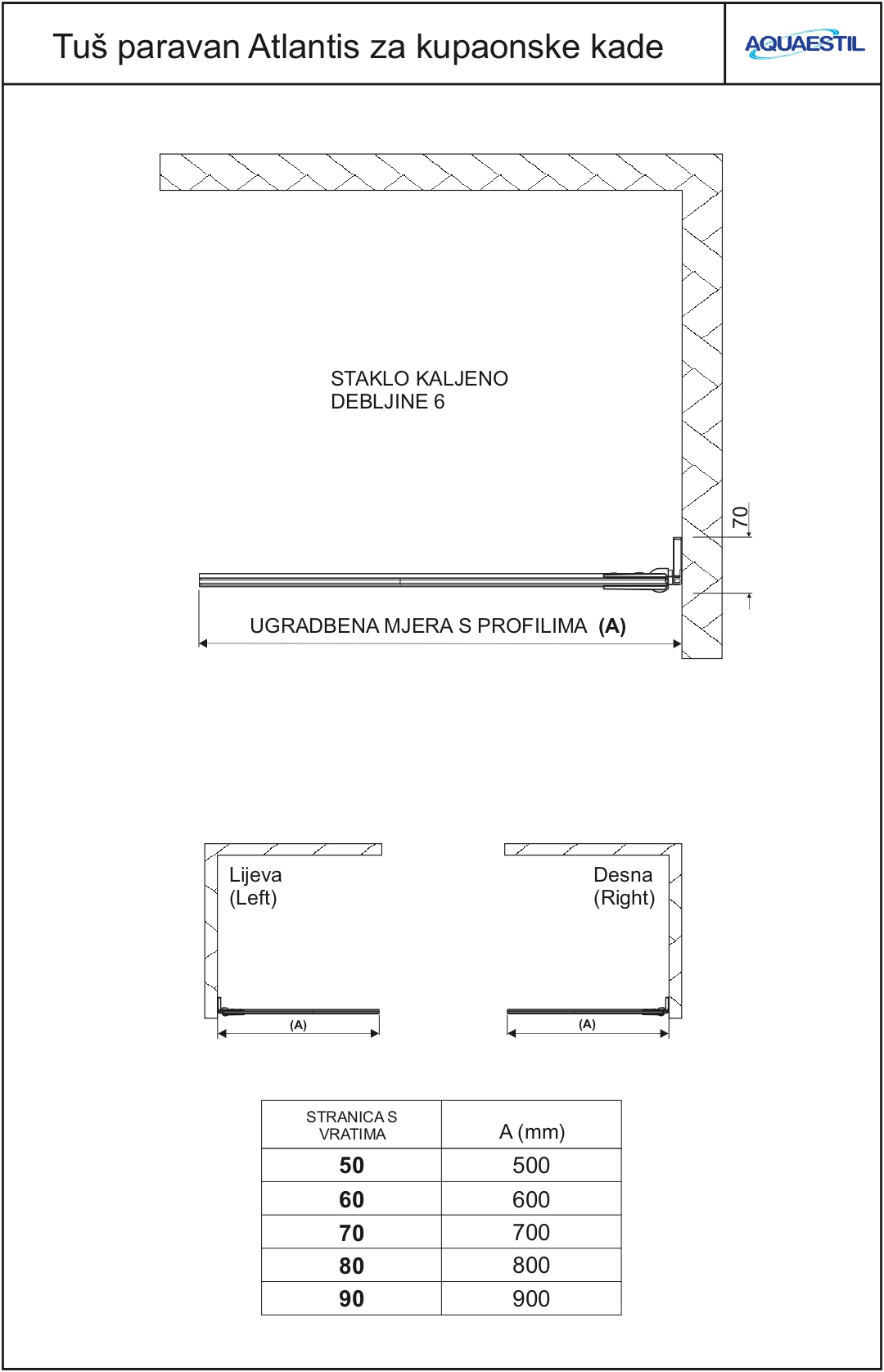Atlantis è una parete girevole prevista per l'installazione su vasche rettangolari. Il vetro è fissato al muro con eleganti cerniere dotate di un sistema di sollevamento che permette alla parete di ruotare senza raschiare la vasca. Gli schermi della serie Atlantis possono essere ordinati esclusivamente su ordinazione.
