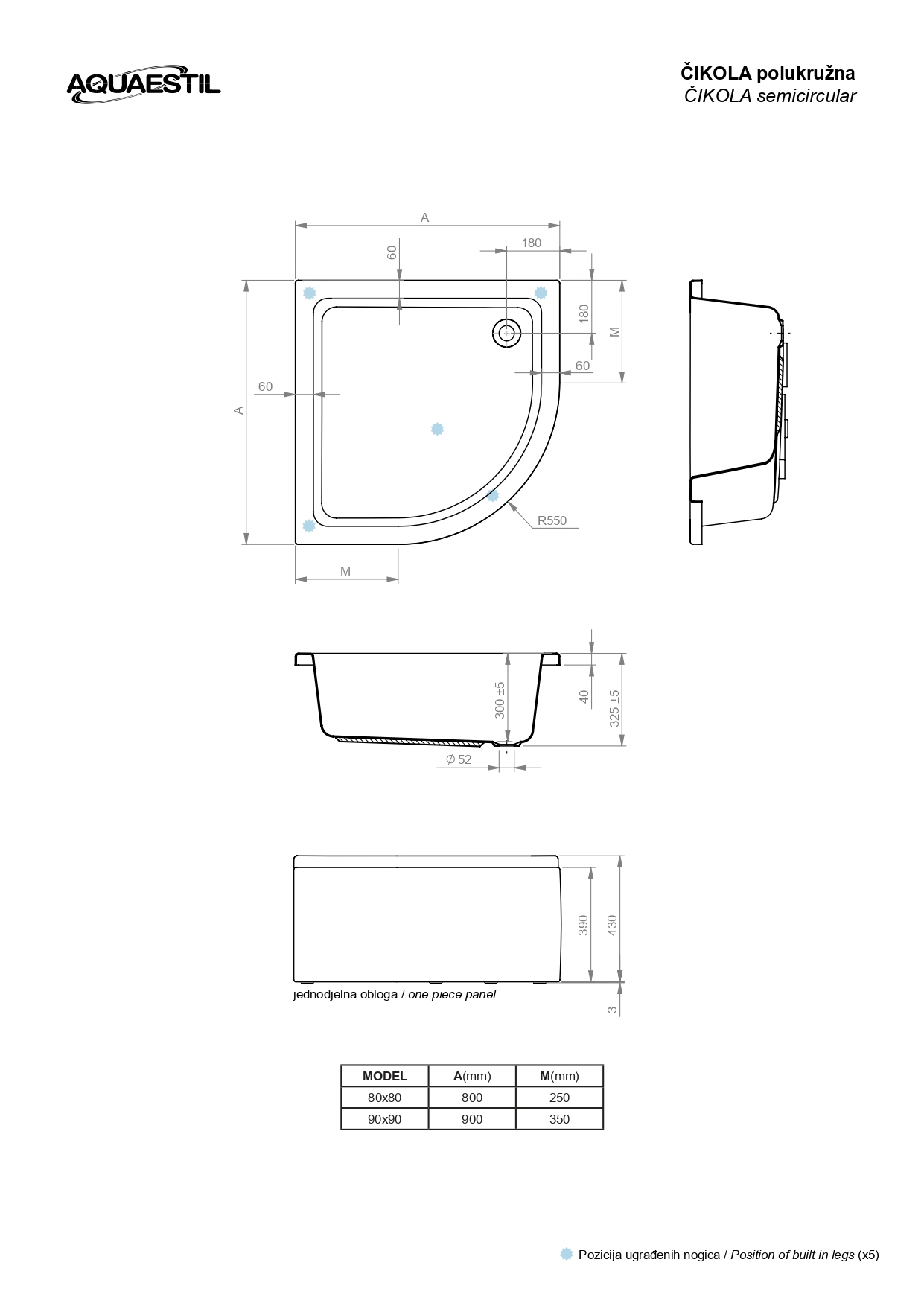 Cikola è un piatto doccia semicircolare profondo 30 cm, eccellente sostituto di vasche standard quando lo spazio è un fattore determinante nel design del bagno.