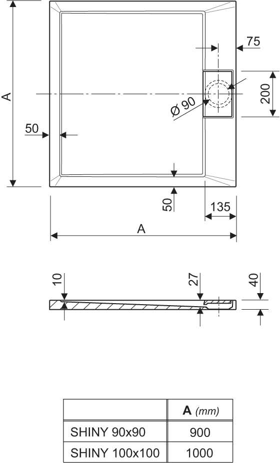 Il piatto doccia Shiny è riconoscibile per lo speciale coperchio del sifone e le sue linee moderne e nette. I piatti doccia Shiny in minerlmarmo (marmo resina) vantano ottime performance di resistenza e linee perfette, caratteristiche rese possibili dalle proprietà superiori di questo materiale. La superficie lucida di questi piatti doccia è ideale per la pulizia quotidiana e la manutenzione.