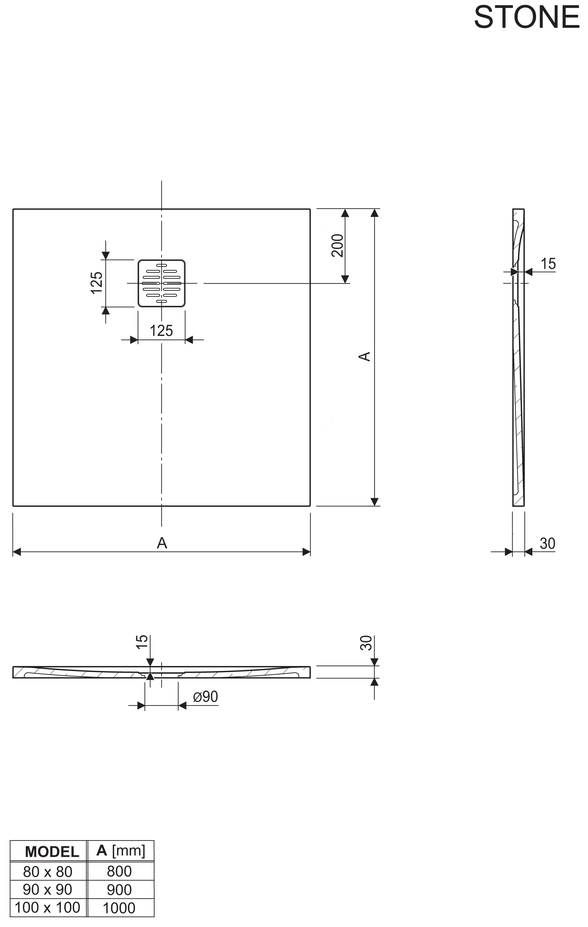 - Il piatto doccia Stone può essere tagliato in diverse dimensioni indicate nelle istruzioni per l’installazione. Non siamo responsabili per eventuali danni causati al piatto doccia o ai beni a causa di un taglio errato.