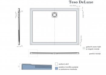 - Il piatto doccia Teso DeLuxe può essere tagliato entro determinate dimensioni. Quando si ordina il taglio di fabbrica, è necessario allegare uno schizzo con linee di taglio contrassegnate.