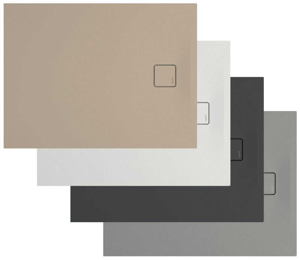 I piatti doccia in mineralmarmo Stone DeLuxe offrono una superficie solida e sofisticata che imita il cemento nei colori bianco, beige, nero o grigio cemento. Un attraente coprisifone realizzato nello stesso effetto della superficie del piatto doccia contribuisce all'aspetto caratteristico dei piatti doccia Stone DeLuxe.