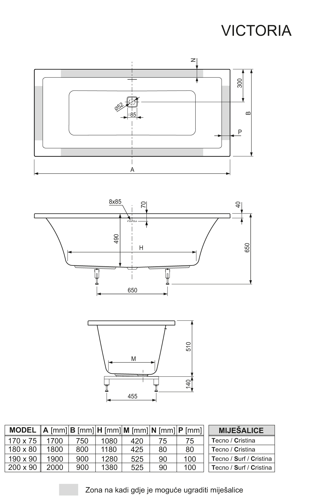 - 200 x 90 cm vol.380 ltr