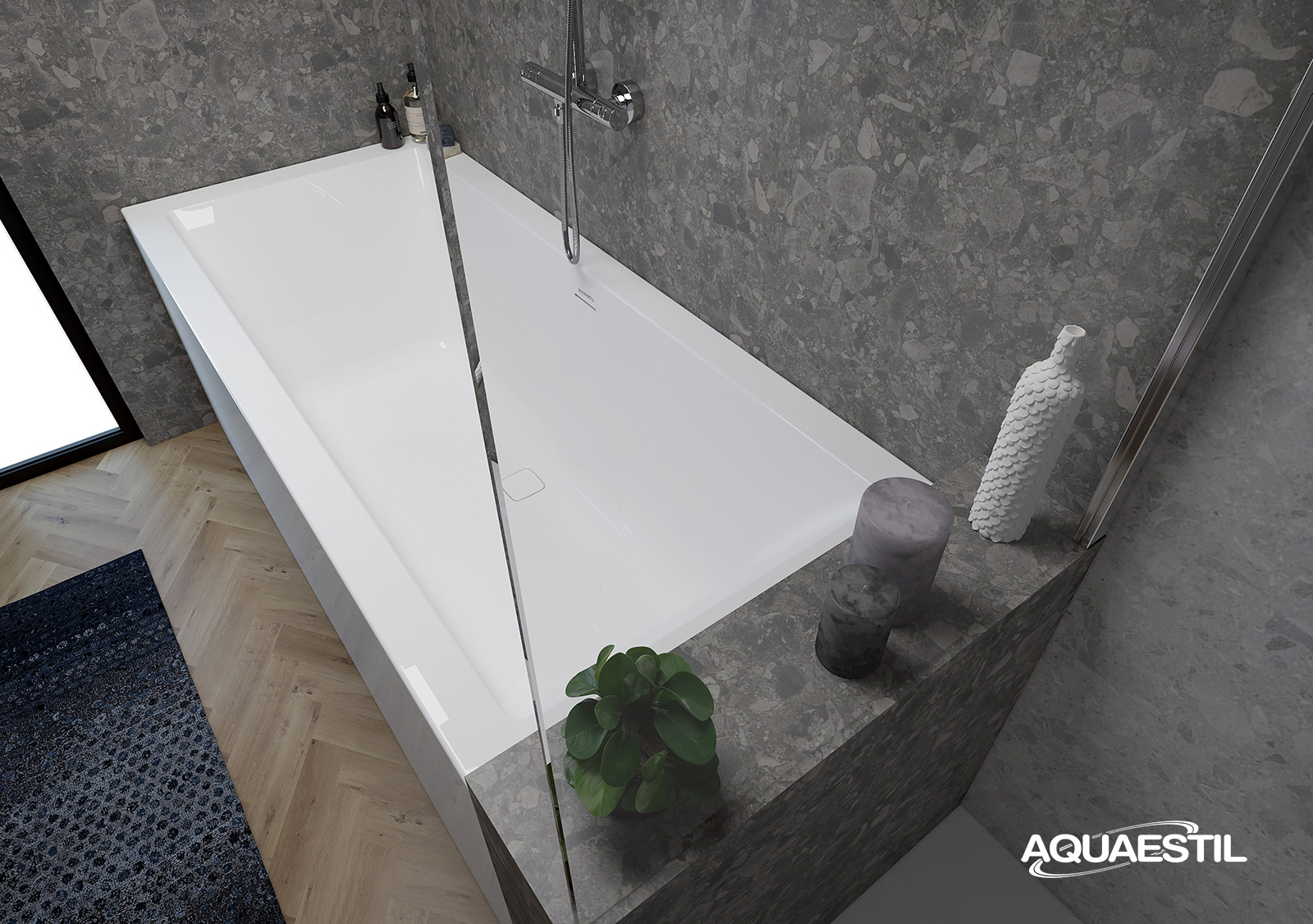 Per pulire la superficie delle vasche da bagno in acrilico sanitario colato Aquaestil, consigliamo la agente per la pulizia delle superfici in acrilico e vetro Aquaestil.