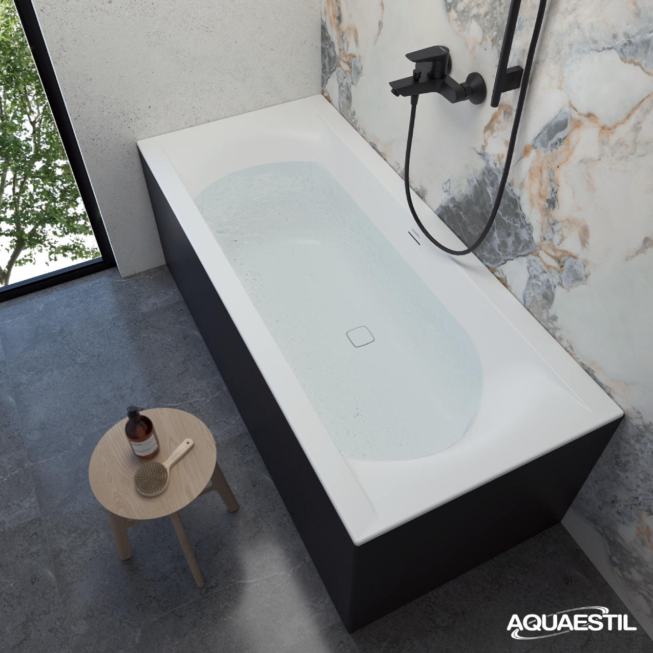 Per pulire la superficie delle vasche da bagno in acrilico sanitario colato Aquaestil, consigliamo la agente per la pulizia delle superfici in acrilico e vetro Aquaestil.