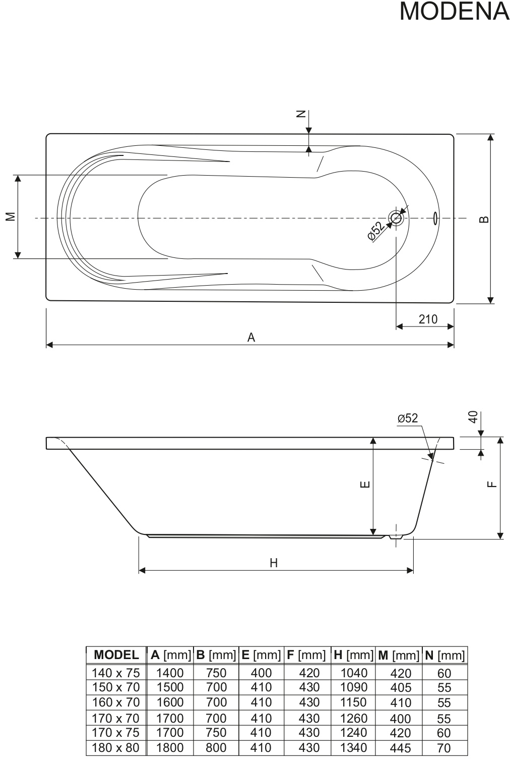 Modena è un'attrattiva vasca rettangolare; la sua specifica forma permette l'utilizzo sia per il bagno che per la doccia. Grazie alle sue linee eleganti e confortevoli, con l'aggiunta di un sopravasca e un sistema idromassaggio potrete avere una vasca multifunzione con molte opzioni per garantire il maximo del relax al corpo e alla mente.