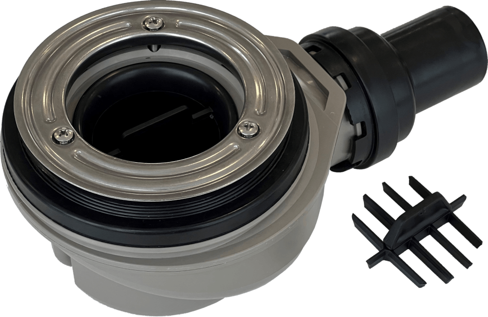 Sifon proizvajalca Geberit za tuš kadi z lastnim pokrovom sifona. Združljivo s tuš kadmi Stone, Stone DeLuxe, Tempo DeLuxe, Teso DeLuxe, Shiny. Prihaja s snemljivim vložkom v obliki glavnika.
